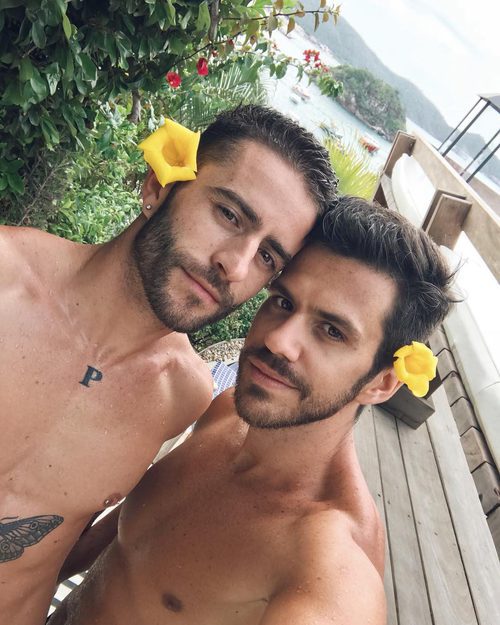 La pareja formada por Pelayo Díaz y Andy Mc Dougall posando muy divertidos y románticos durante unas vacaciones en Brasil.