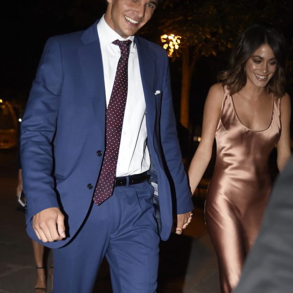 La pareja formada por Pepe Barroso Silva y Tini Stoessel de camino a la cena de nominados de los Premios 40 Principales 2016.