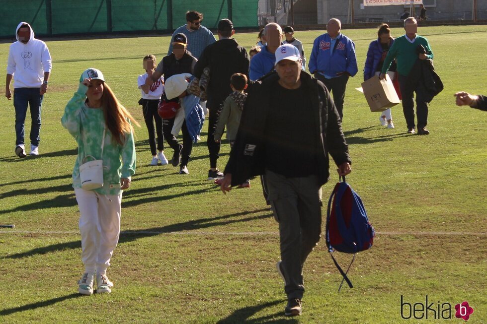 El exfutbolista Gerard Piqué y la cantante Shakira junto a Tonino, hermano de Shakira, en un partido de béisbol de su hijo Milan Piqué.