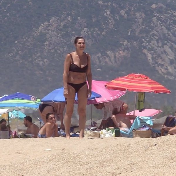 Raquel Revuelta es fotografiada en las playas de Cádiz donde ha disfrutado con sus hijos que han recuperado la sonrisa.