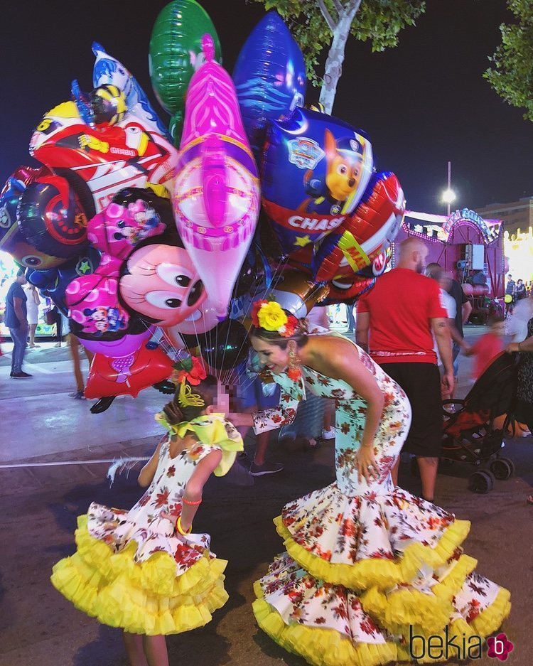 La mujer de David Bisbal, Rosanna Zanetti, ha disfrutado de la Feria de Almería 2018 al lado de su marido y de su hija, Ella Bisbal.