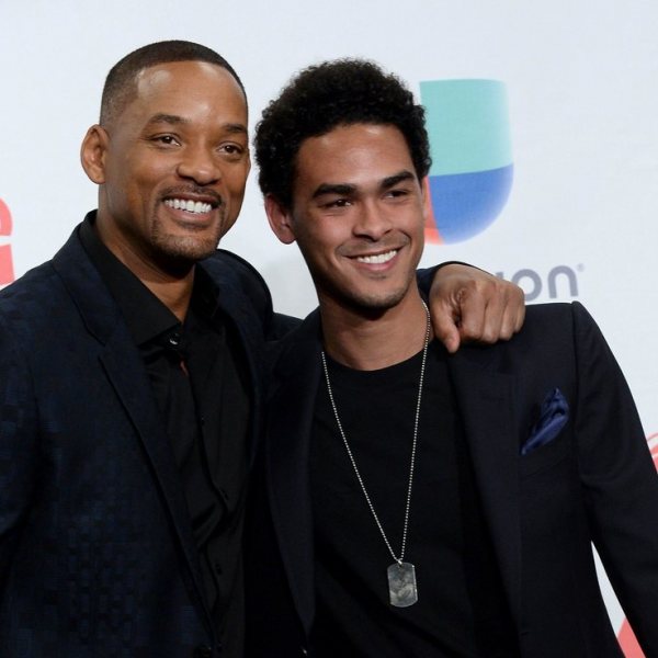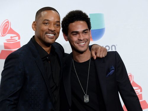 El actor de Hollywood, Will Smith, posando junto a su hijo mayor, al que tuvo con la actriz Sheree Fletcher, Trey Smith, en los GRAMMY Latinos de 2016.
