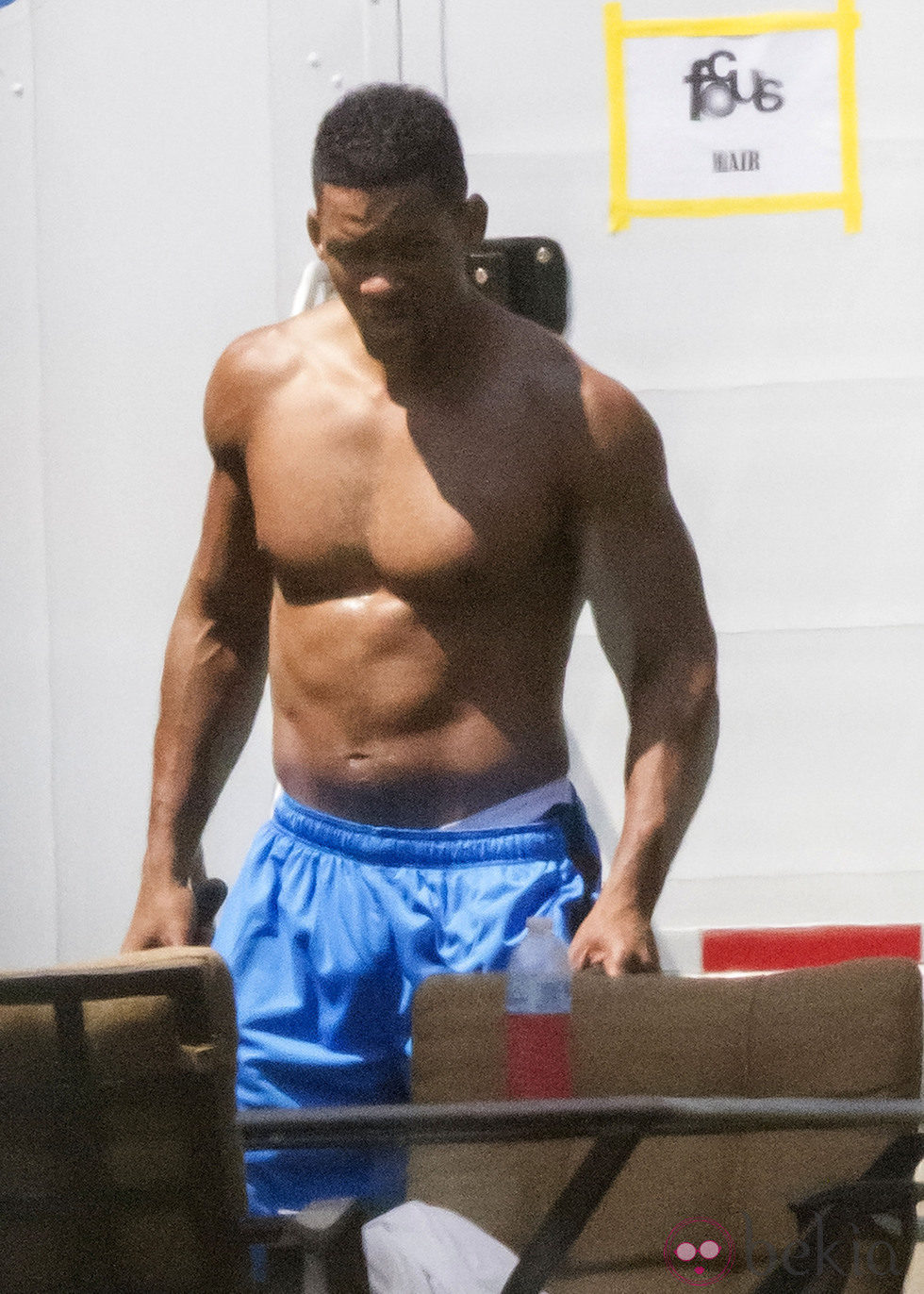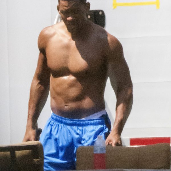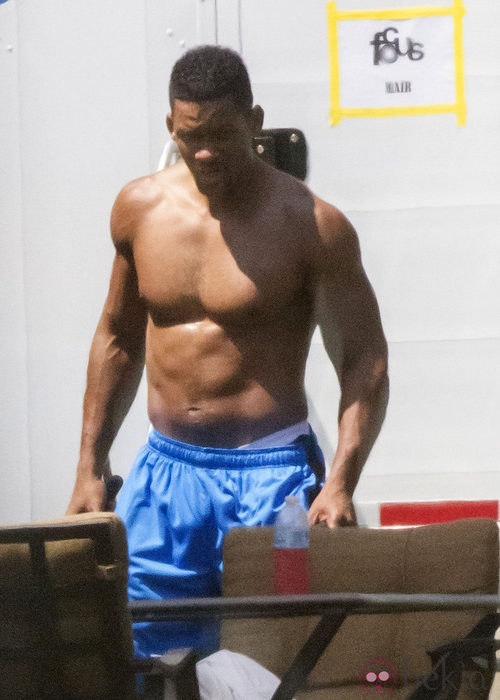 El actor Will Smith luciendo pectorales en el set de rodaje de la comedia 'Focus'.