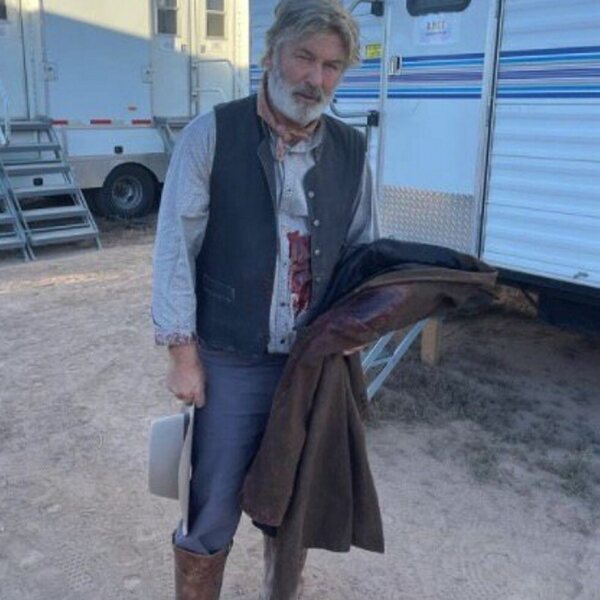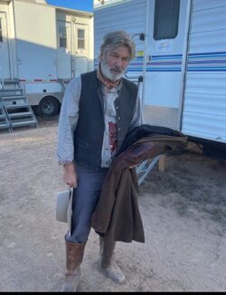 El actor Alec Baldwin posando caracterizado como su personaje durante el rodaje de la película 'Rust' en Nuevo México.