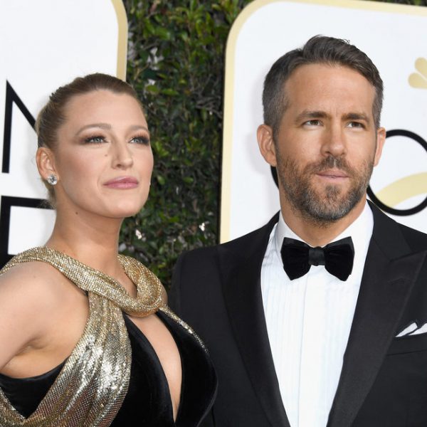 La pareja formada por Blake Lively y Ryan Reynolds posa sobre la alfombra roja previa a la gala de los Globos de Oro 2017 celebrada en Los Angeles.