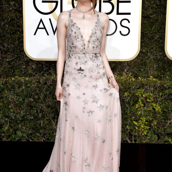 La actriz Emma Stone posa sobre la alfombra roja previa a la gala de los Globos de Oro 2017 celebrada en Los Angeles.