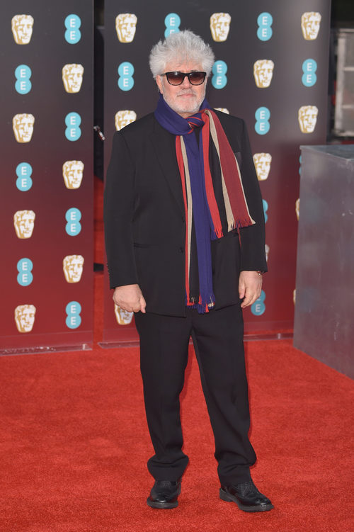 El director Pedro Almódovar, que acude para competir a Mejor película de habla no inglesa por 'Julieta', posando en la alfombra roja de los Premios Bafta 2017