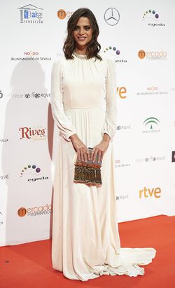La actriz Macarena Gómez posando sobre la alfombra roja de los Premios Forqué 2017 a su llegada a la entrega de los galardones