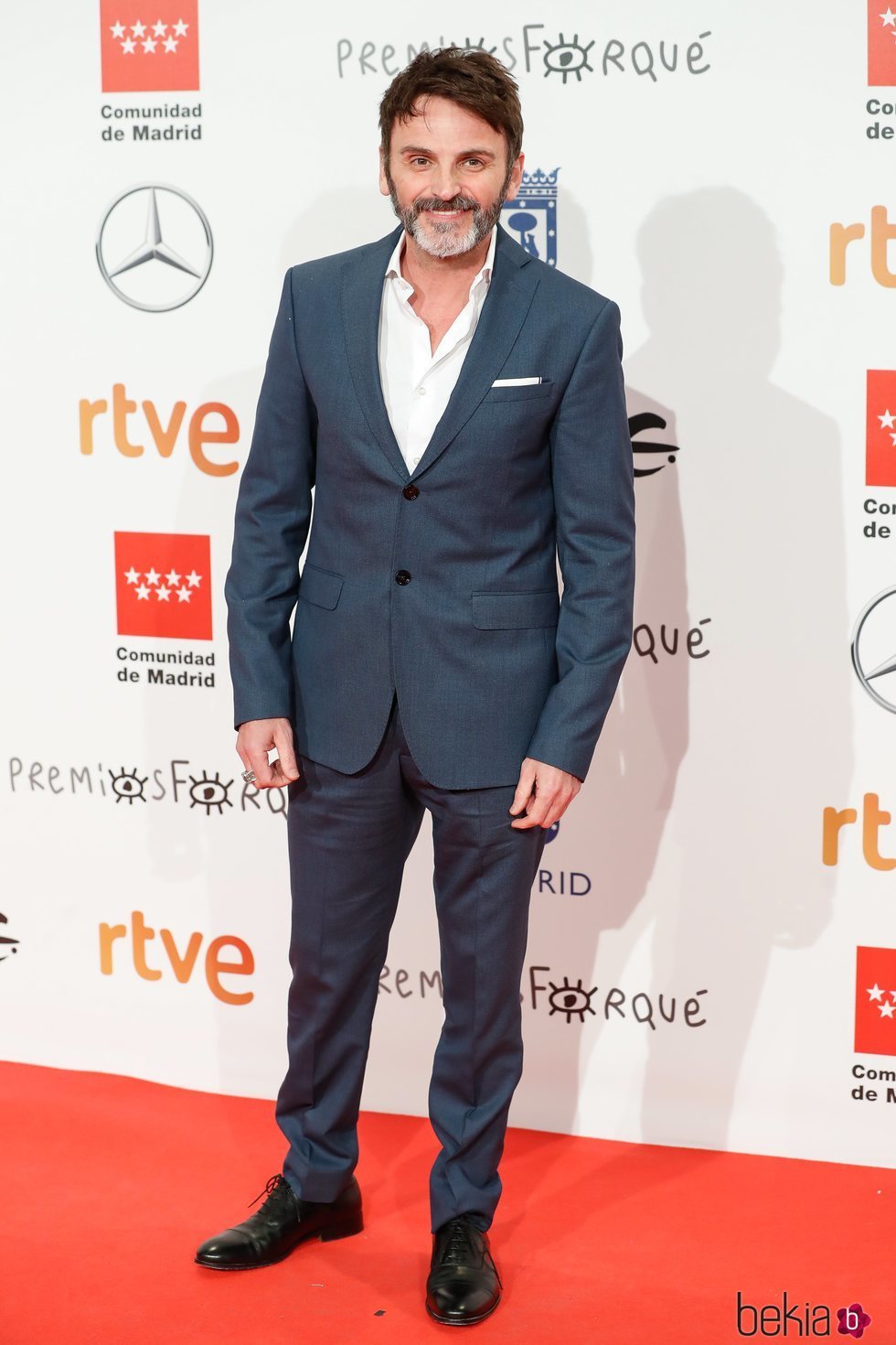El actor Fernando Tejero posando en la alfombra roja a su llegada a la entrega de los Premios Forqué 2020 en Madrid.