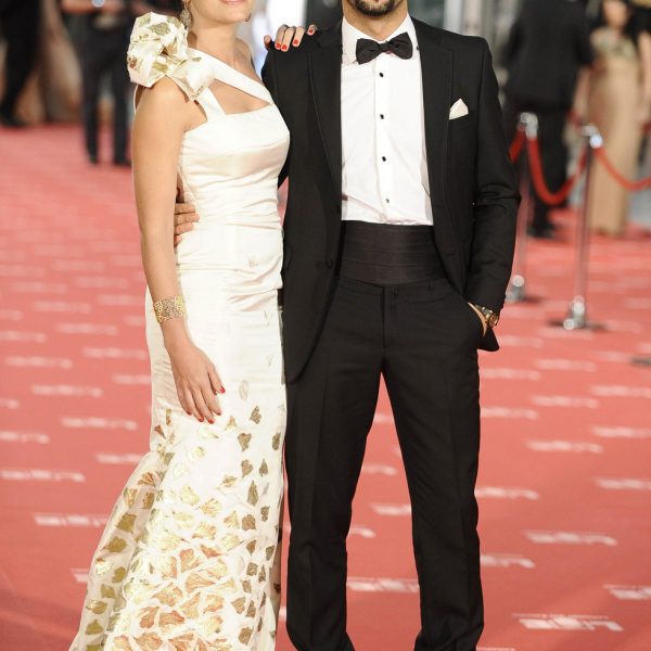 La pareja formada por la cantante Leire Martínez y el actor Antonio Velázquez en la alfombra roja de los Premios Goya 2012.