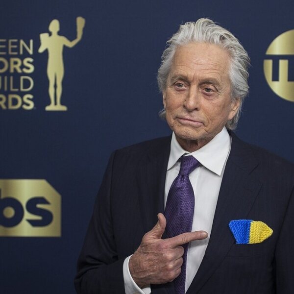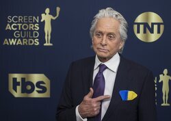 El actor Michael Douglas muestra su apoyo a Ucrania con un reivindicativo pañuelo con la bandera del país en los Screen Actors Guild Awards 2022.