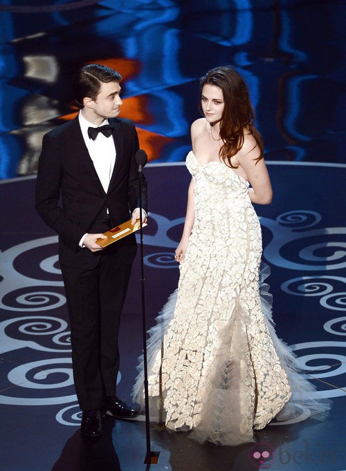 El actor Daniel Radcliffe y la actriz Kristen Stewart presentan en la ceremonia de los Oscar 2013