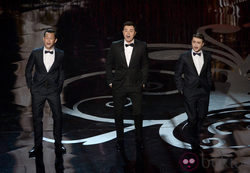 Los actores Joseph Gordon-Levitt, Seth MacFarlane y Daniel Radcliffe bailando y cantando en los Oscar 2013