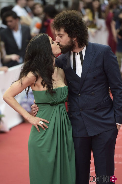 La pareja formada por Nerea Barros y Juan Ibáñez dándose un beso en la gala de clausura del Festival de Málaga 2015.