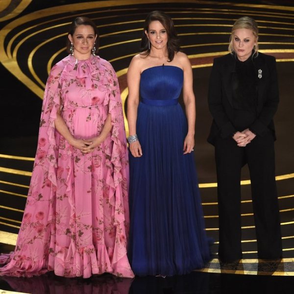 Las actrices Maya Rudolph, Tina Frey y Amy Poehle sobre el escenario del Dolby Theatre en la gala de los premios Oscar 2019.