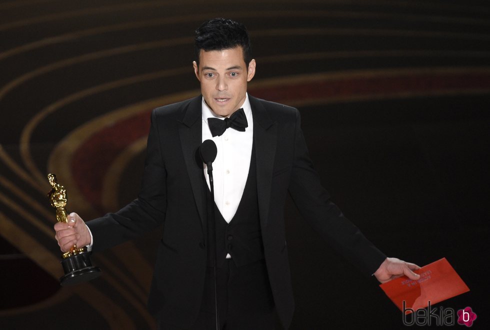 El intérprete Rami Malek agradeciendo su galardón a Mejor actor de los Oscar 2019 por su papel en 'Bohemian Rhapsody'.