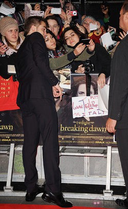 El actor Robert Pattinson atiende a sus fans en el estreno de 'Amanecer. Parte 2' en Londres