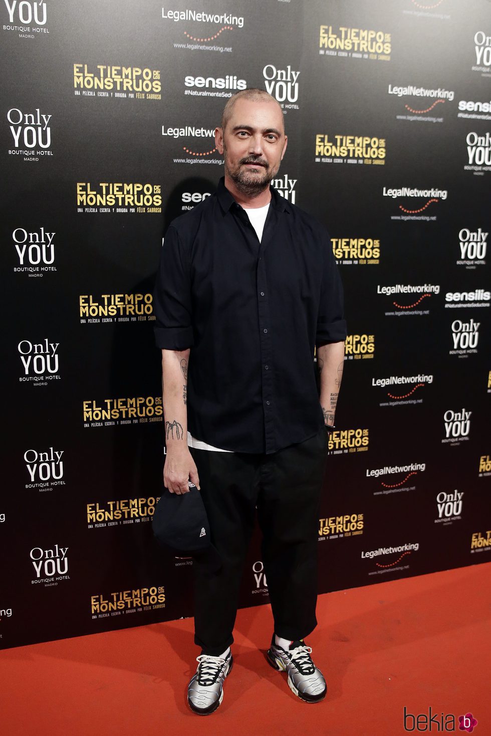 El diseñador de moda David Delfín saca fuerza para asistir al estreno de la película 'El tiempo de los monstruos' en Madrid