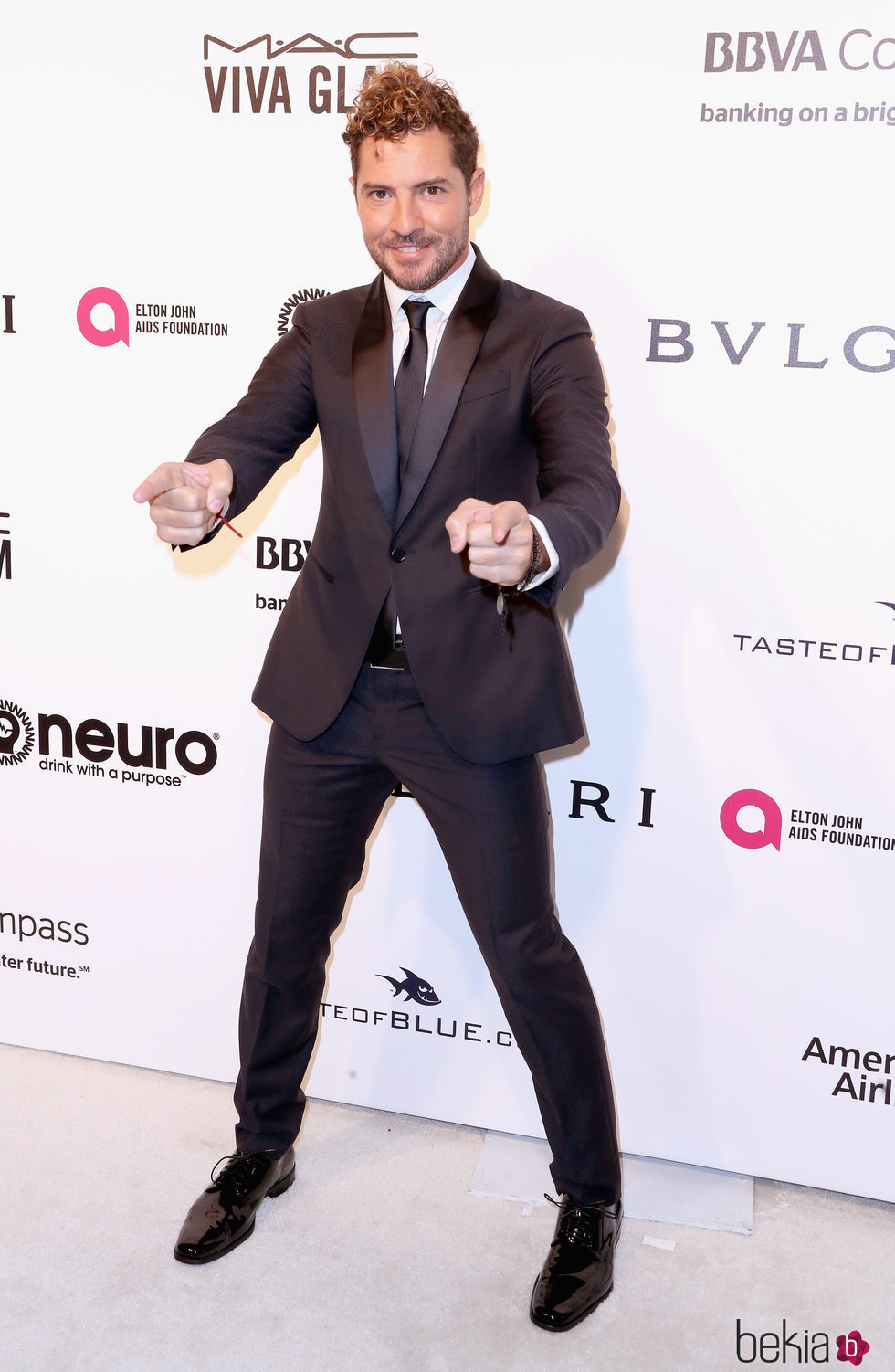El cantante David Bisbal en el photocall de la fiesta de la Fundación Elton John con motivo de los Premios Oscar 2017.