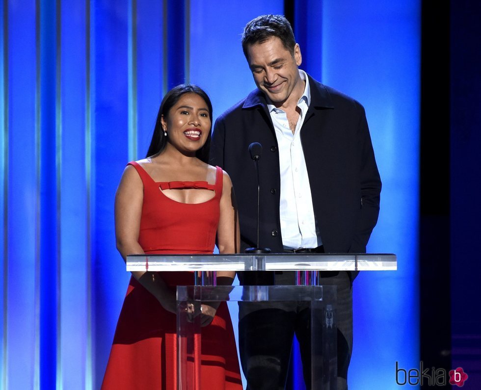 Los actores, Yalitza Aparicio y Javier Bardem, durante la gala de los Independent Spirit Awards 2019 celebrada en Santa Mónica, California.