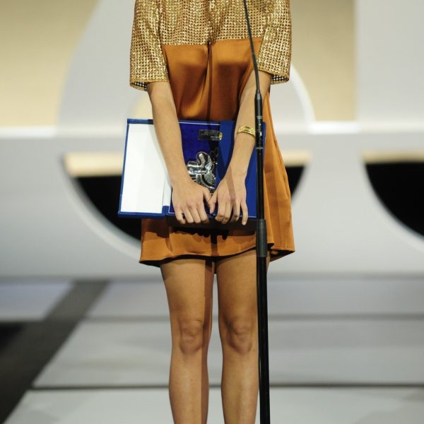 La actriz Macarena García de la Camacha con la Concha de Plata por 'Blancanieves' en la clausura del Festival de Cine de San Sebastián 2012.
