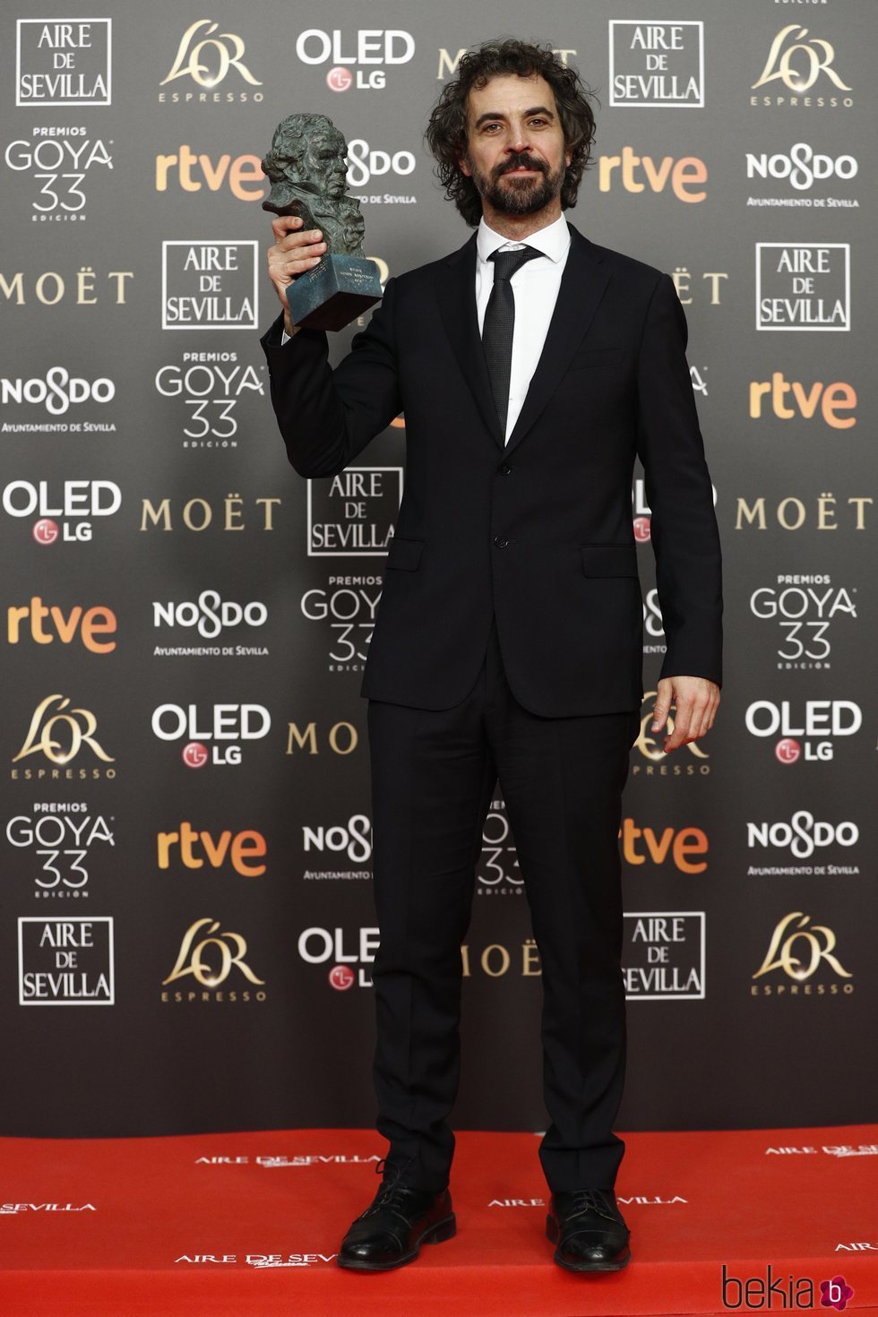 Álvaro Brechner posa con su estatuilla al Mejor Guión Adaptado en los Premios Goya 2019 por su trabajo en la película 'La noche de 12 años'.