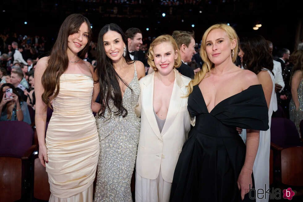 La actriz Demi Moore con sus hijas, Rumer Willis, Scout Willis y Tallulah Willis en la gala de los Oscars 2025.
