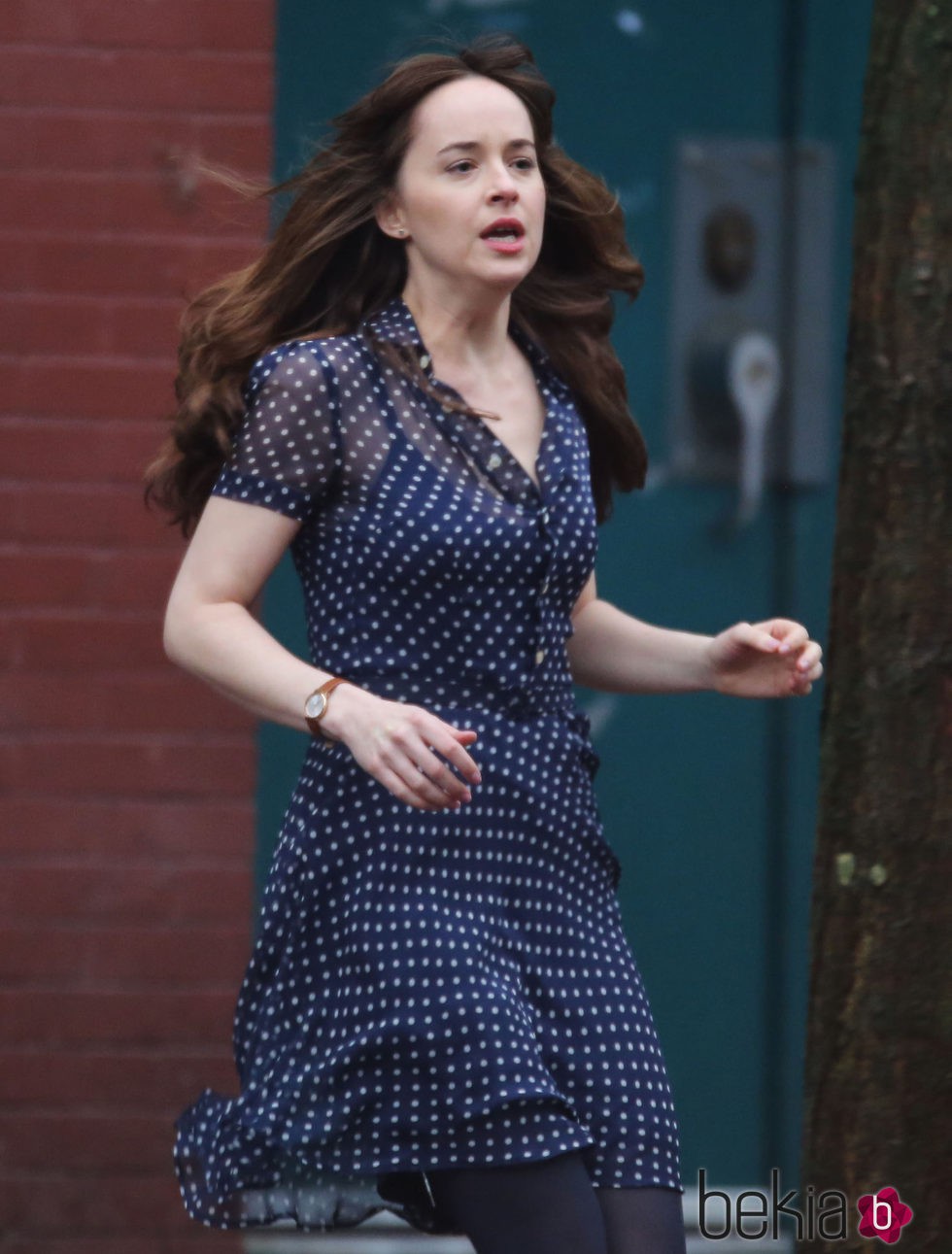 La actriz Dakota Johnson sale corriendo en el rodaje de 'Cincuenta sombras más oscuras' en Vancouver