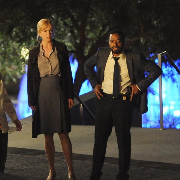 Los actores Nicole Kidman y Chiwetel Ejiofor durante el rodaje de una escena de la película 'El secreto de sus ojos' en Los Angeles, el 12 de febrero de 2015-