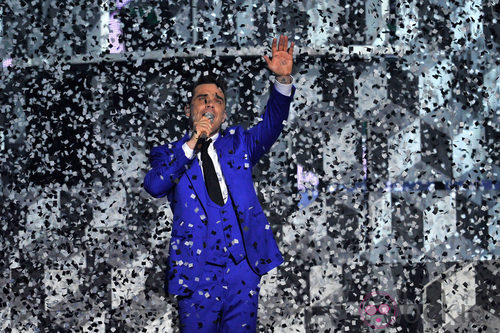 El cantante Robbie Williams durante su actuación en la gala de los Brit Awards 2013.
