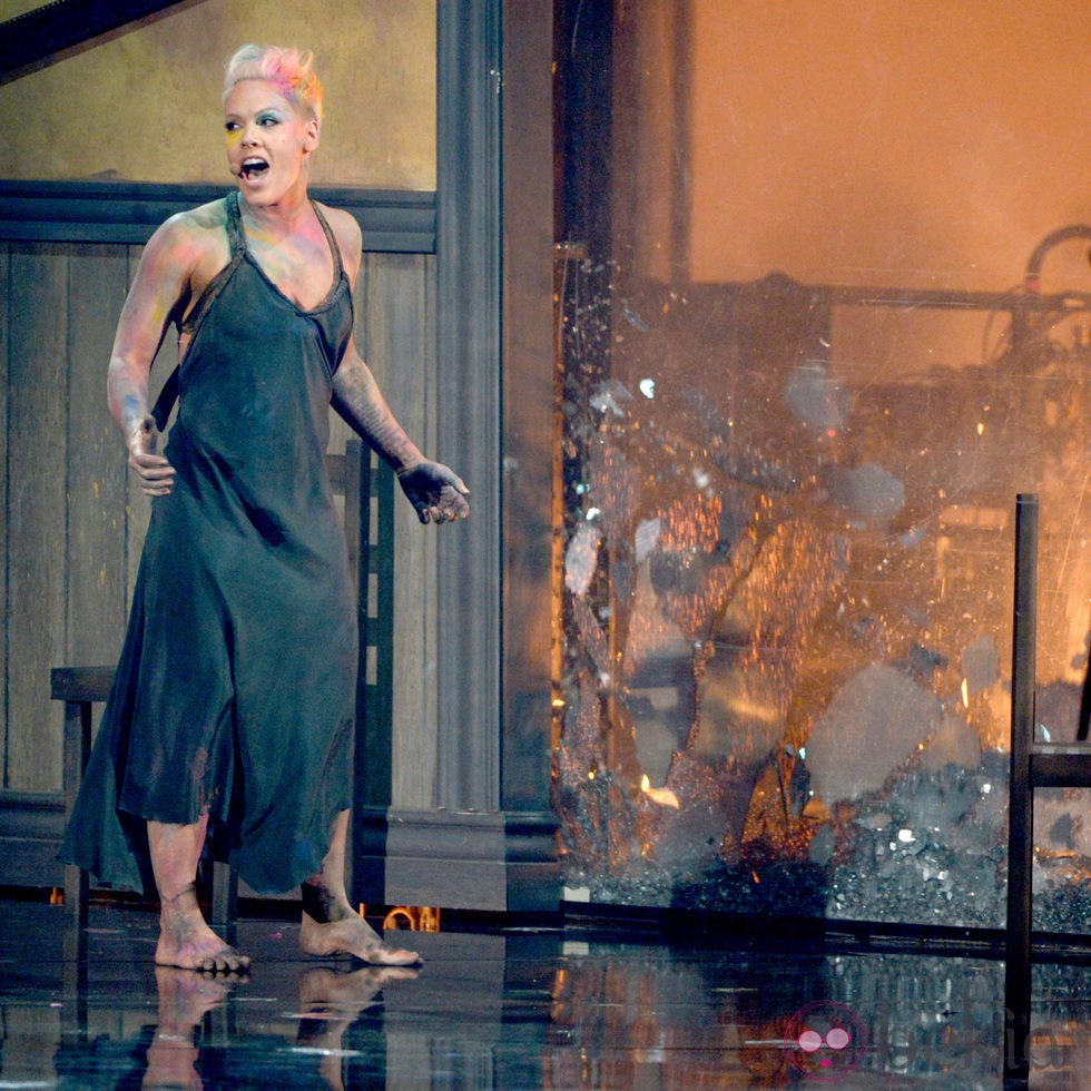 La cantante Pink cantando en la gala de los American Music Awards 2012