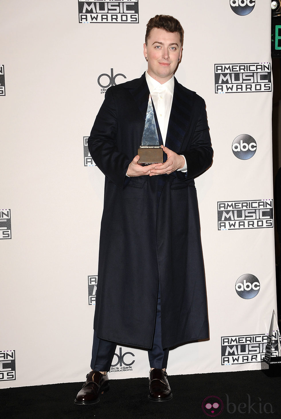 El cantante Sam Smith con su galardón de los American Music Awards 2014