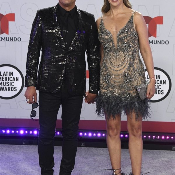 Carlos Vives y Claudia Elena Vasques son fotografiados en la alfombra roja de los Latin American Music Awards 2021.