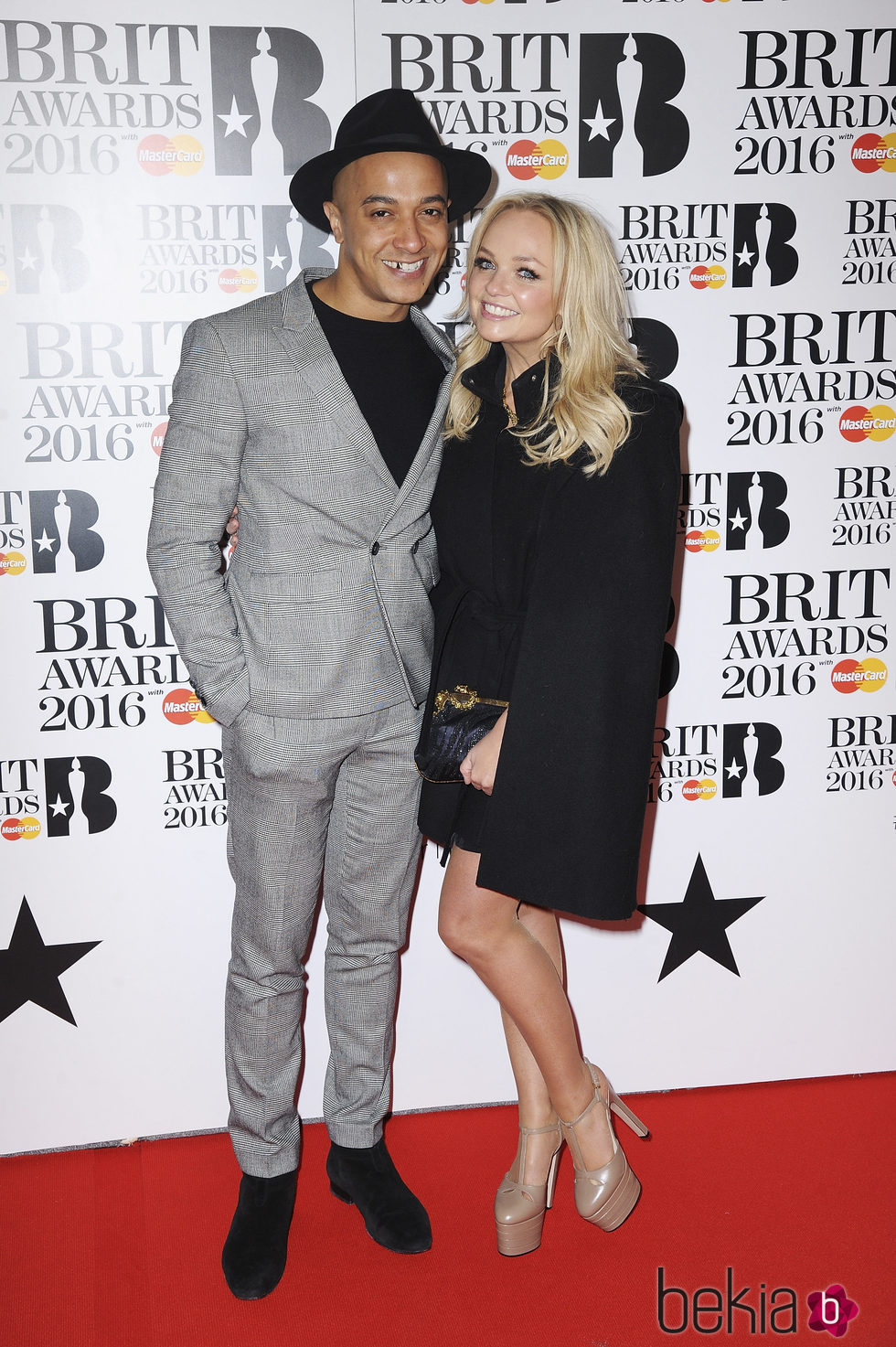 La cantante Emma Bunton y Jade Jones en la alfombra roja de los Premios Brit 2016
