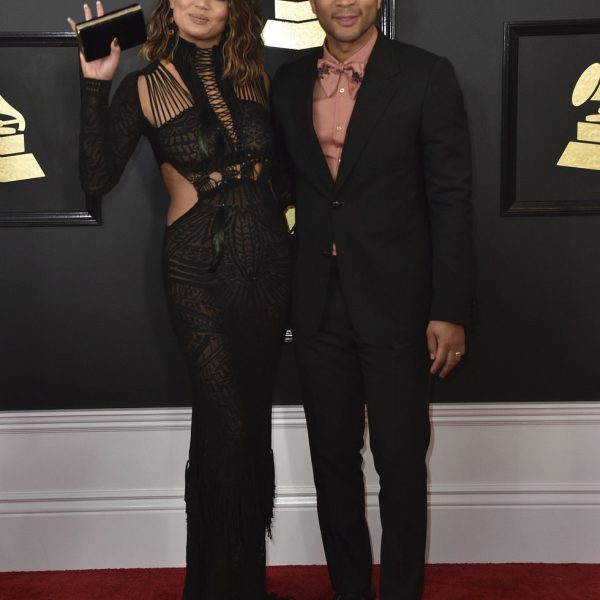 El cantante John Legend acudió junto a su mujer Chrissy Teigen a la gala de los Premios Grammy 2017. Los dos posaron felizmente juntos.