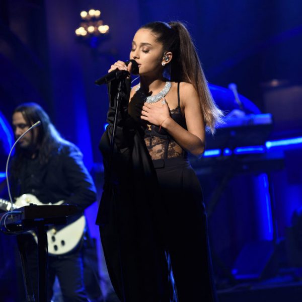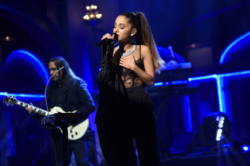 La cantante Ariana Grande demuestra su torpeza quitándose la chaqueta en el espectáculo en 'Saturday Night Live'