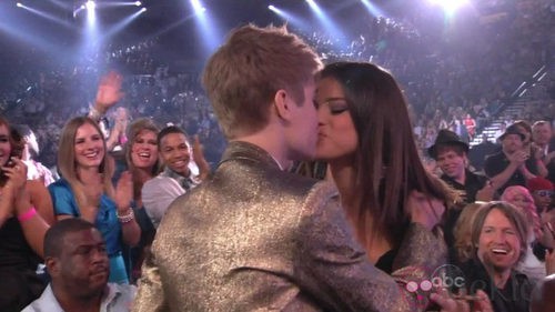 La pareja de artistas se besó para celebrar uno de los galardones que recibió Justin Bieber.