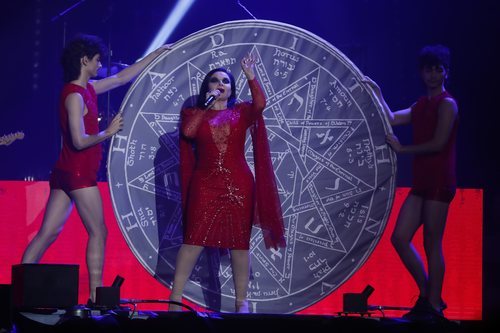 Alaska es fotografiada en el concierto Vive Dial como Fangoria interpretando uno de sus temas más populares de la carrera.