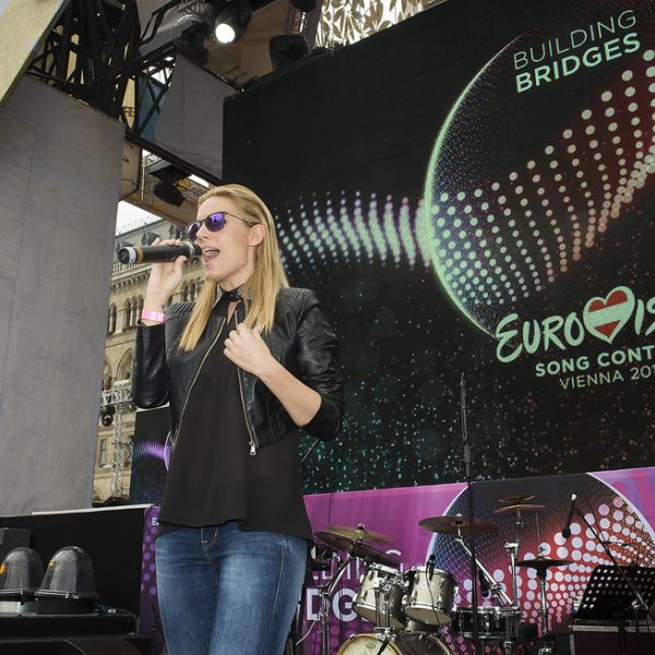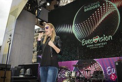 La representante de España en Eurovisión 2015 Edurne en una prueba de sonido en el Eurovision Village de Viena