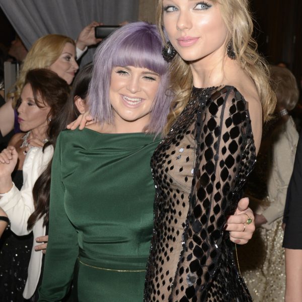 La celebrity Kelly Osbourne y la cantante Taylor Swift en la fiesta Pre-Grammy 2014 de Clive Davis.