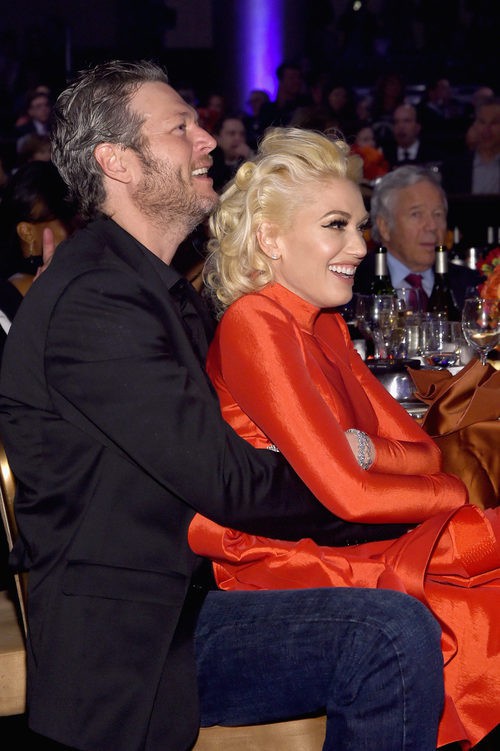 Los cantantes Gwen Stefani y Blake Shelton abrazados en la fiesta Clive Davis previa a los Grammy 2016