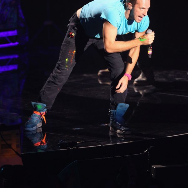 Chris Martin durante su actuación en los MTV Europe Music Awards 2011 celebrados en Belfast