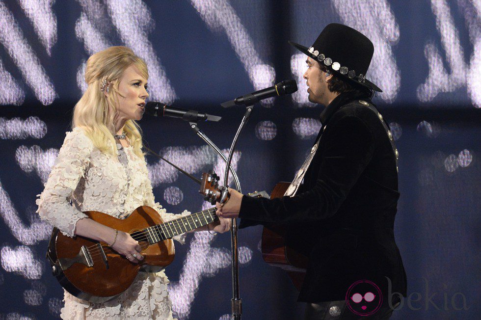 El dúo neerlandés The Common Linnets interpreta el tema 'Calm After The Storm' en el Festival de Eurovisión 2014.