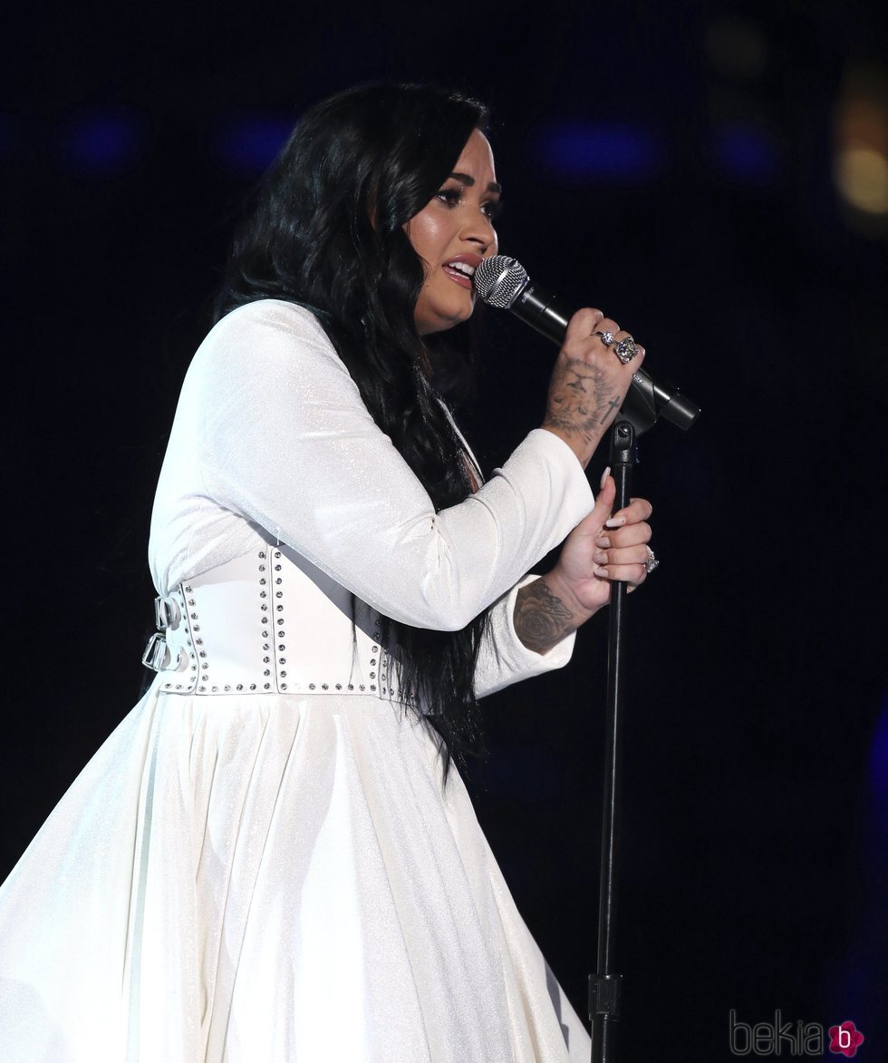 La cantante Demi Lovato muy emocionada en su actuación en los Premios Grammy 2020, la primera que hacía tras sufrir una sobredosis.