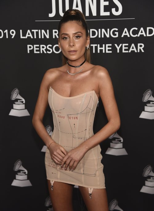 La cantante Cami a su llegada a la gala del premio Persona del Año 2019 de los Grammy Latino que en 2019 fue para Juanes.