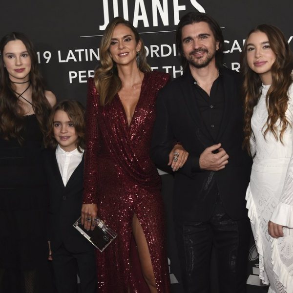 El cantante Juanes, premiado, junto a su mujer, Karen Martínez, y sus tres hijos, Luna, Paloma y Dante en el premio Persona del Año 2019 en los Grammy Latino.