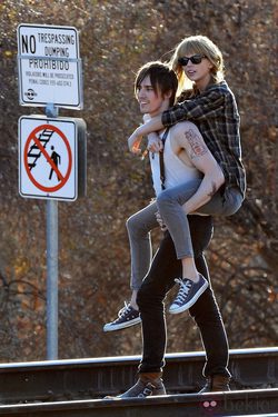 Taylor Swift y un misterioso acompañante protagonizan esta imagen del rodaje de su nuevo clip 'I Knew You Were Trouble', tema procedente del disco 'Red'