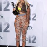 Kim Kardashian y el cantante Kanye West en los Bet Awards 2012