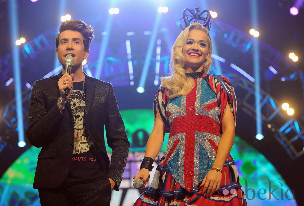 El presentador Nick Grimshaw y la cantante Rita Ora en la gala de los BBC Radio 1 Teen Awards 2014.
