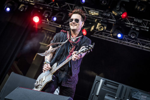 El actor Johnny Depp ofreciendo un concierto en Estocolmo